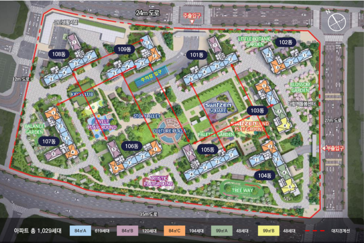1029세대, 전용 84 ㎡ / 99 ㎡