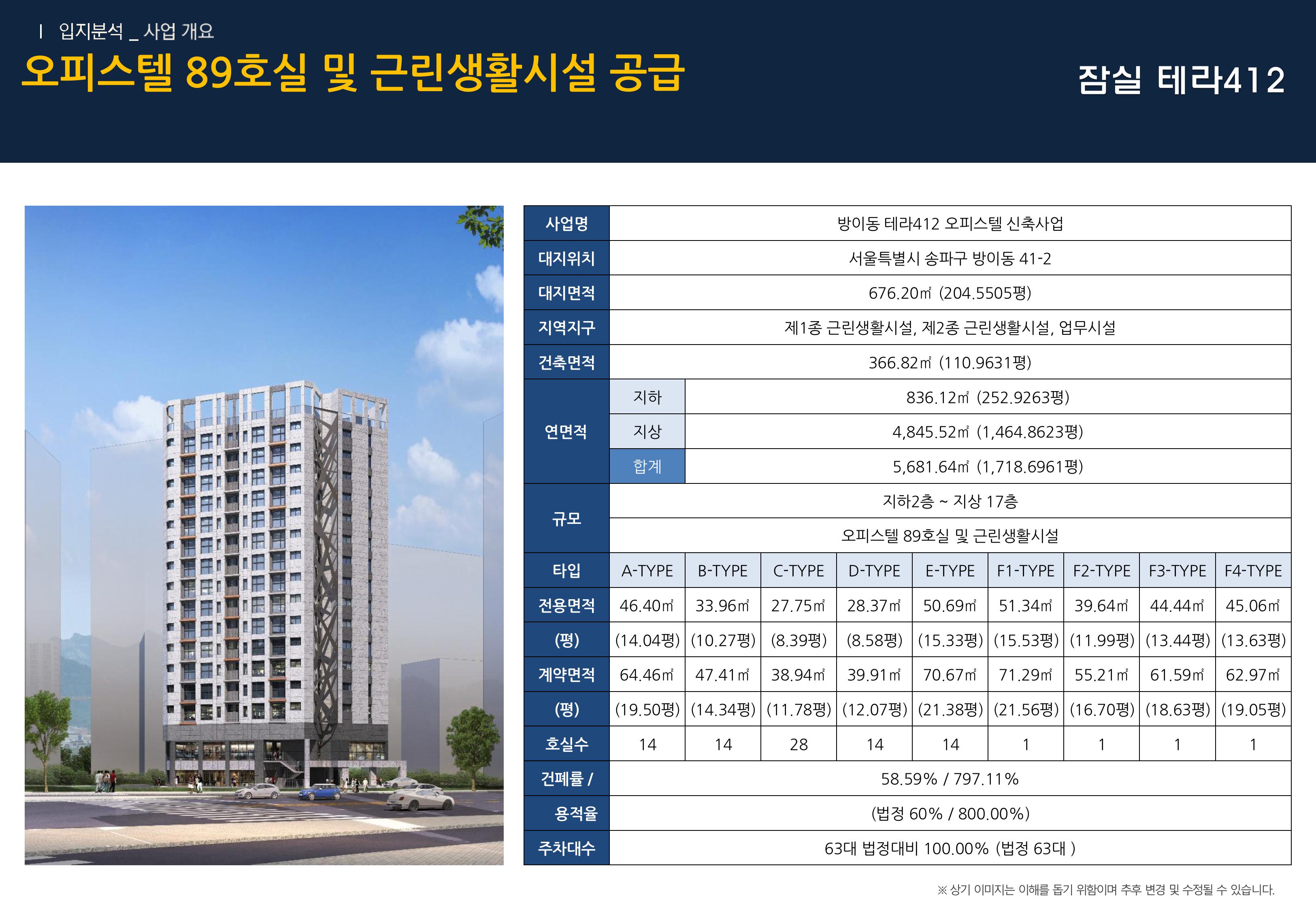 송파구 방이동 41-2번지에 위치한, 테라412 오피스텔은,
