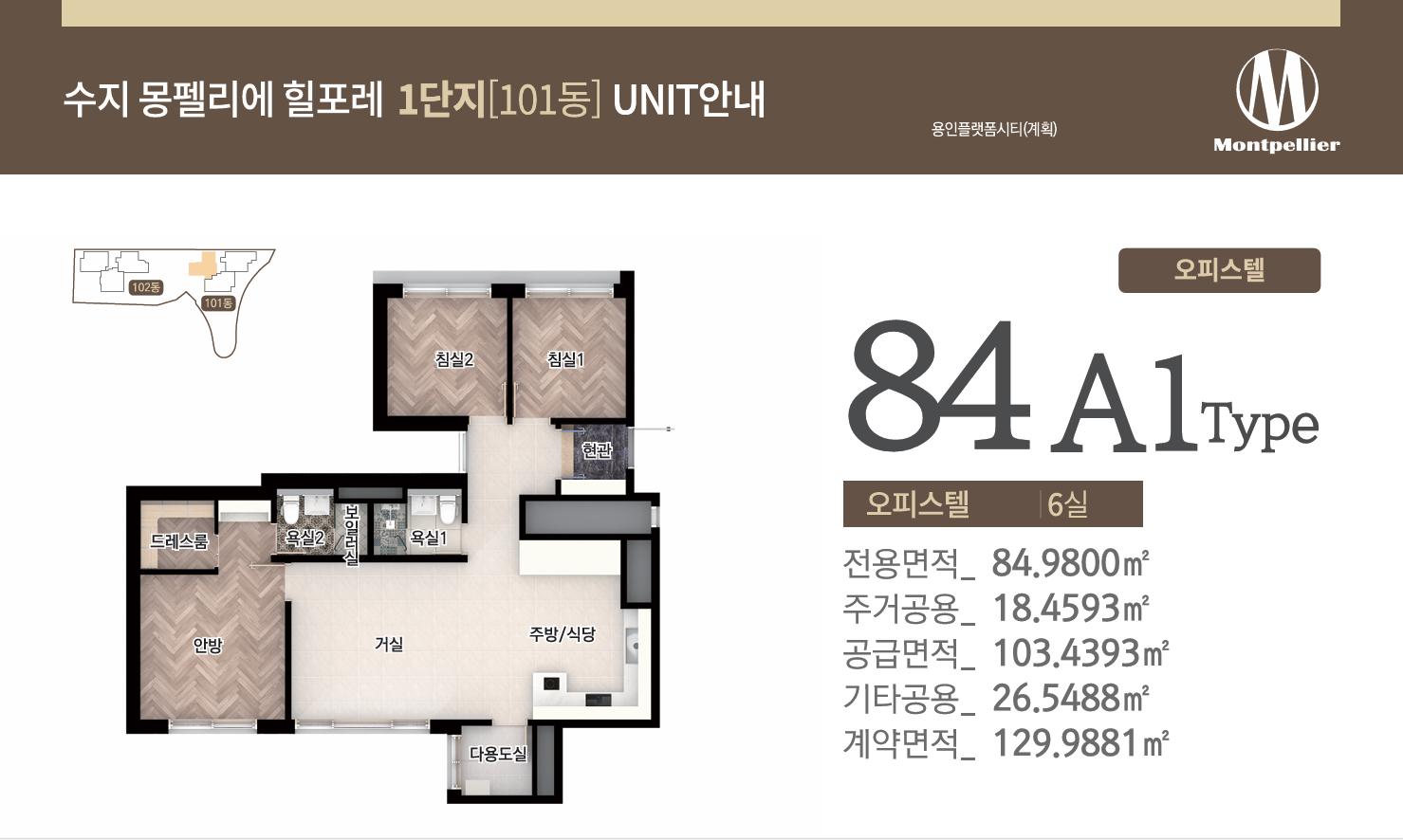 수지 몽펠리에 힐포레는, 준공이 완료된 물건으로, 사전예약제로 운영중에 있습니다.