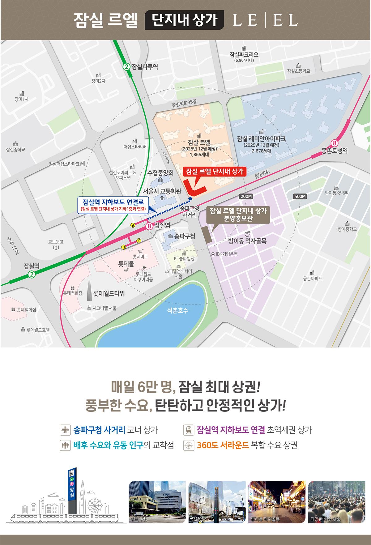 잠실 르엘 상가는 잠실역과 직접 연결된 초역세권 상가입니다.